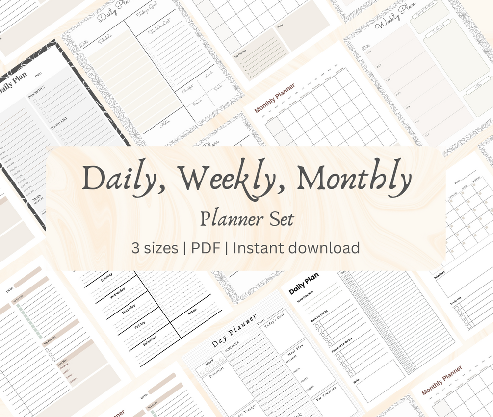 Printable Format: Download once and print as many copies as you need! Our printable planner gives you the flexibility to plan your days without the need for multiple physical planners. Available in A4, A5, and US Letter sizes, you can choose the format that best fits your needs.